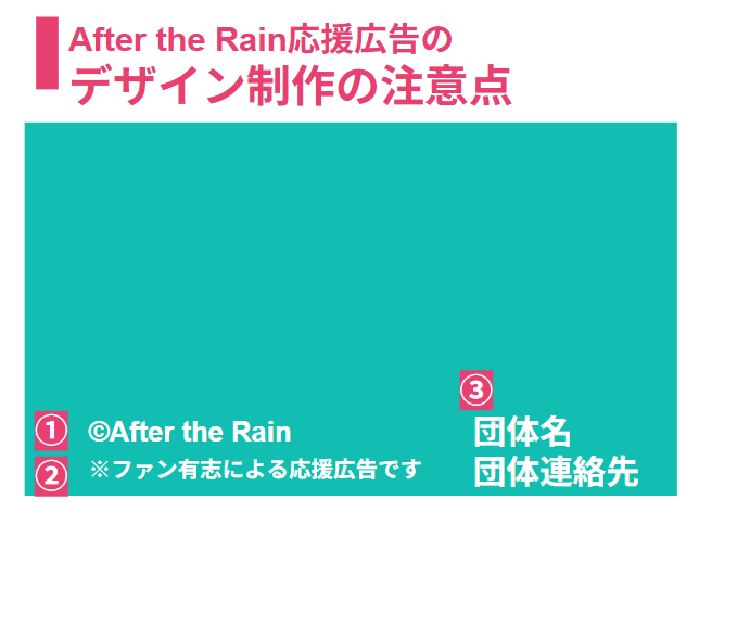 応援広告を掲出する際は、After the Rain応援広告規程を守っていただく必要があります。